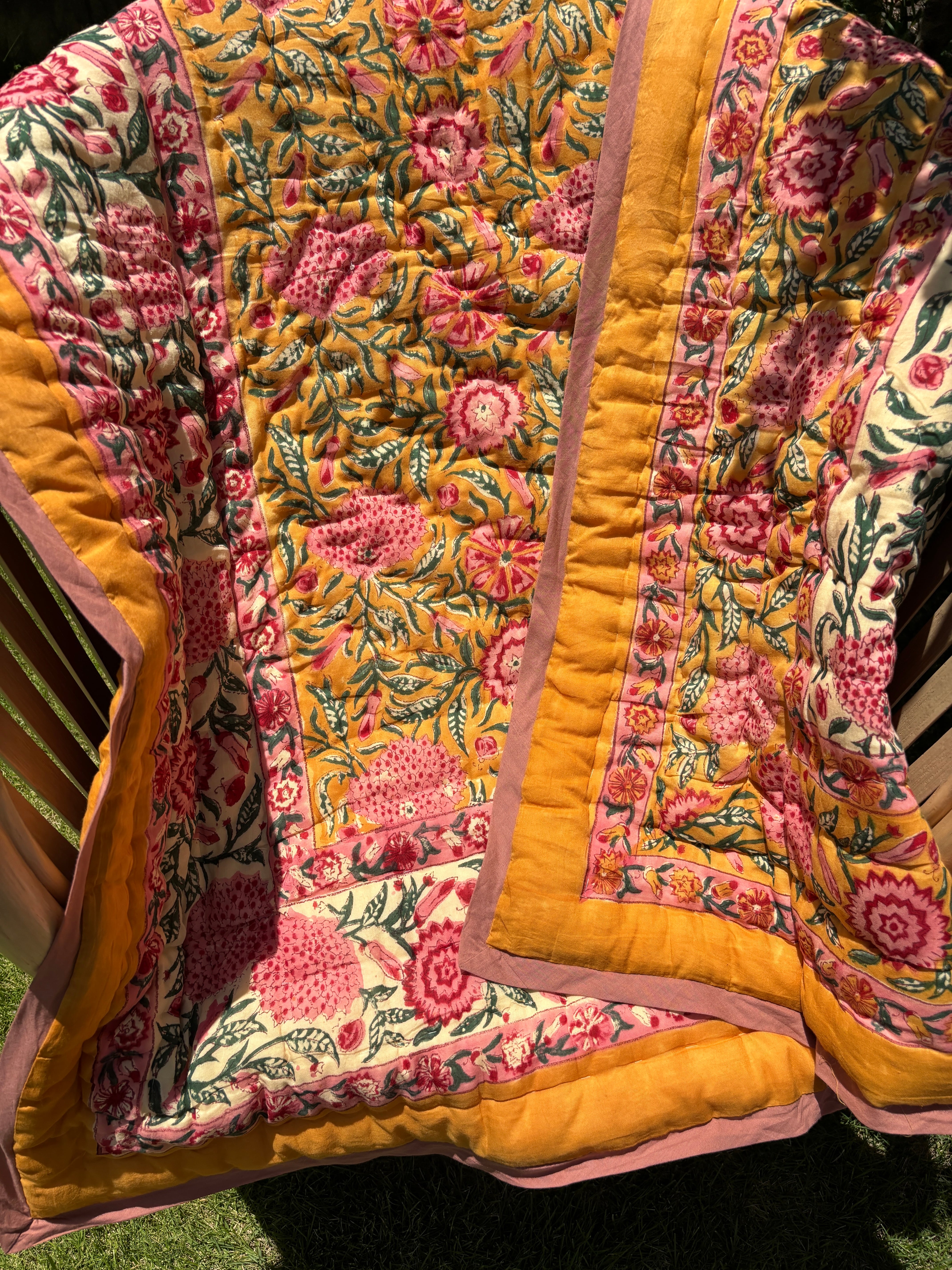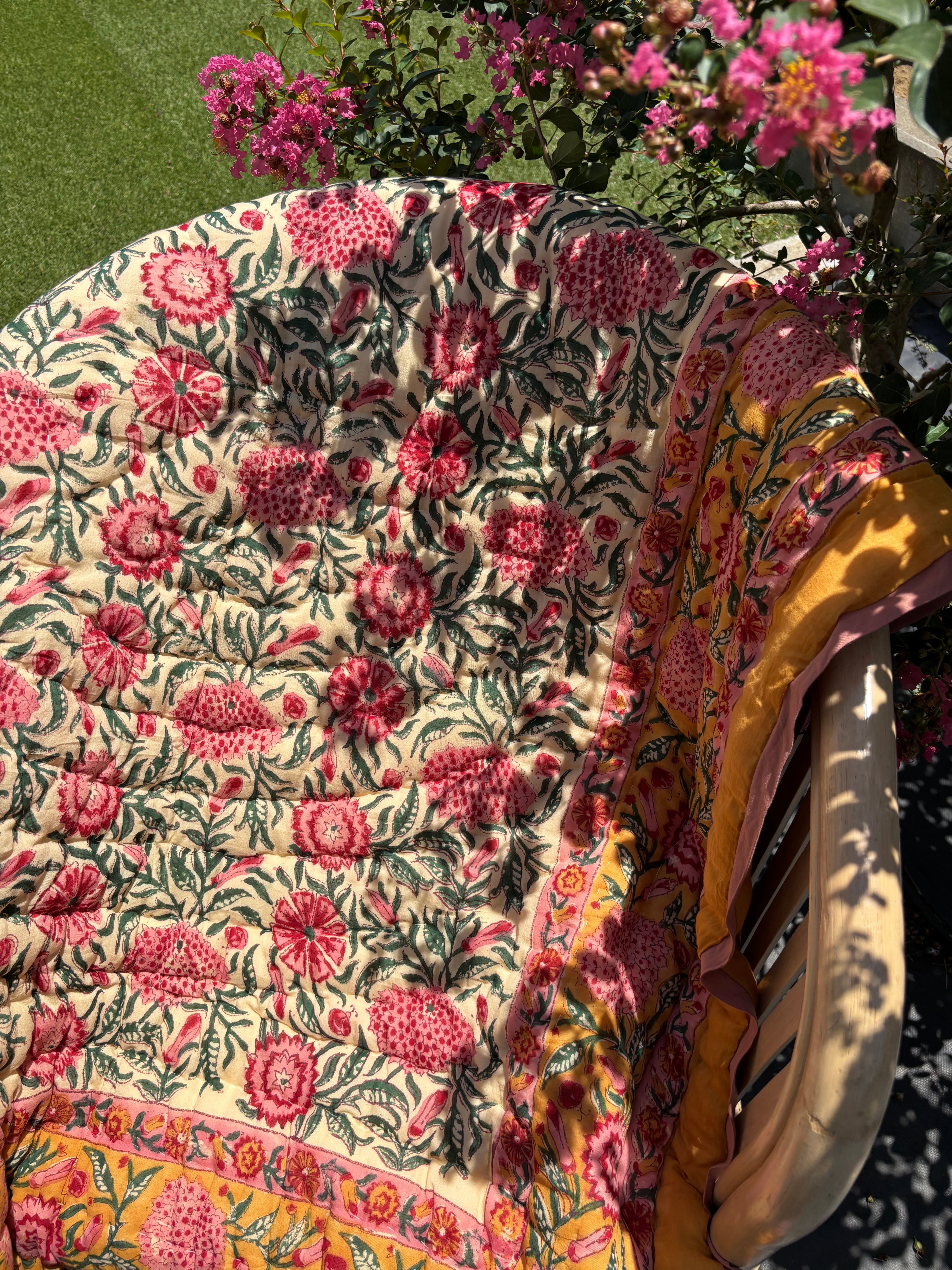 Cotton100%で柄から仕上げまで職人の手作業で仕上げられた軽くて柔らかい中綿入りのリバーシブルキルト ー