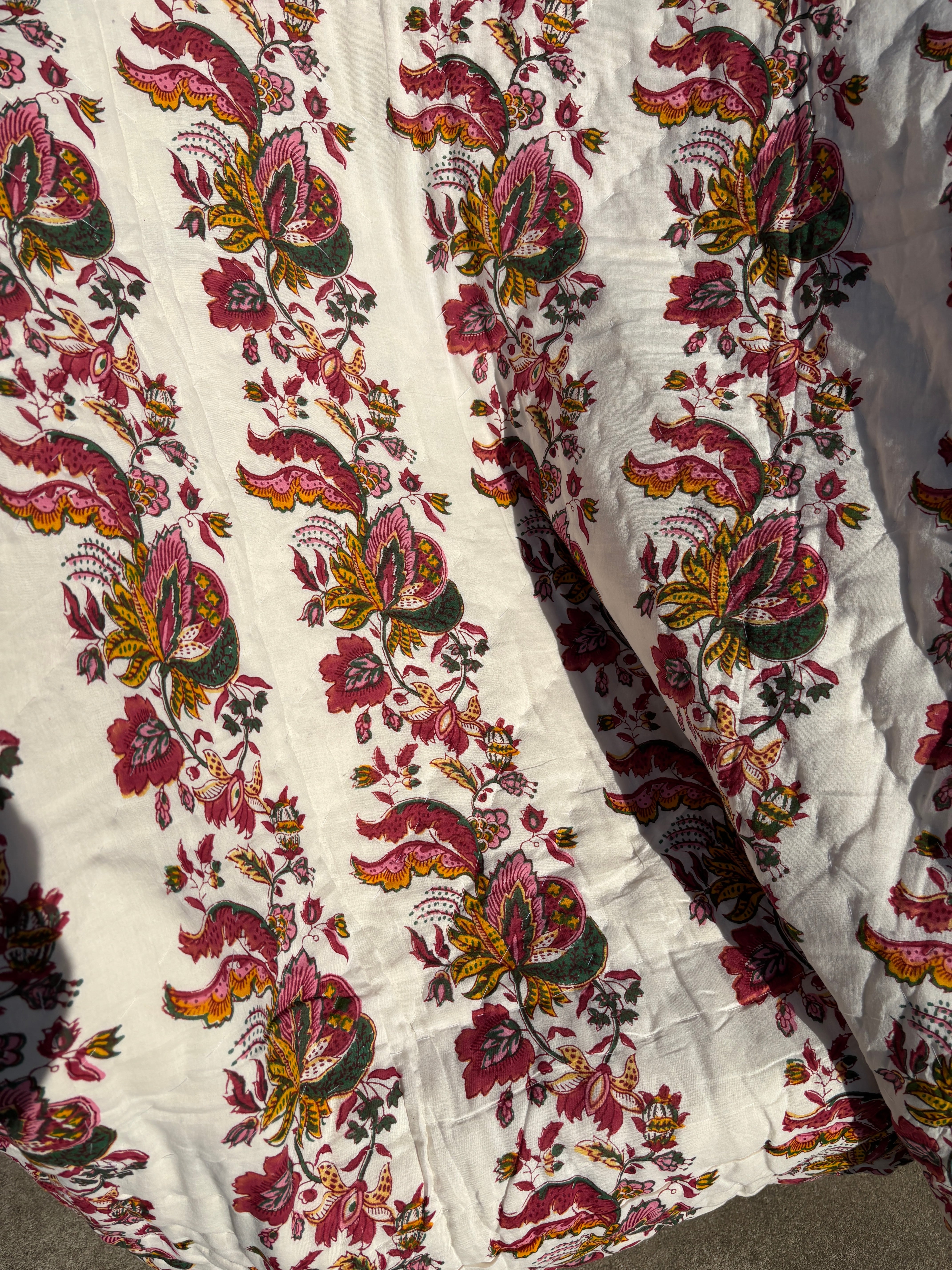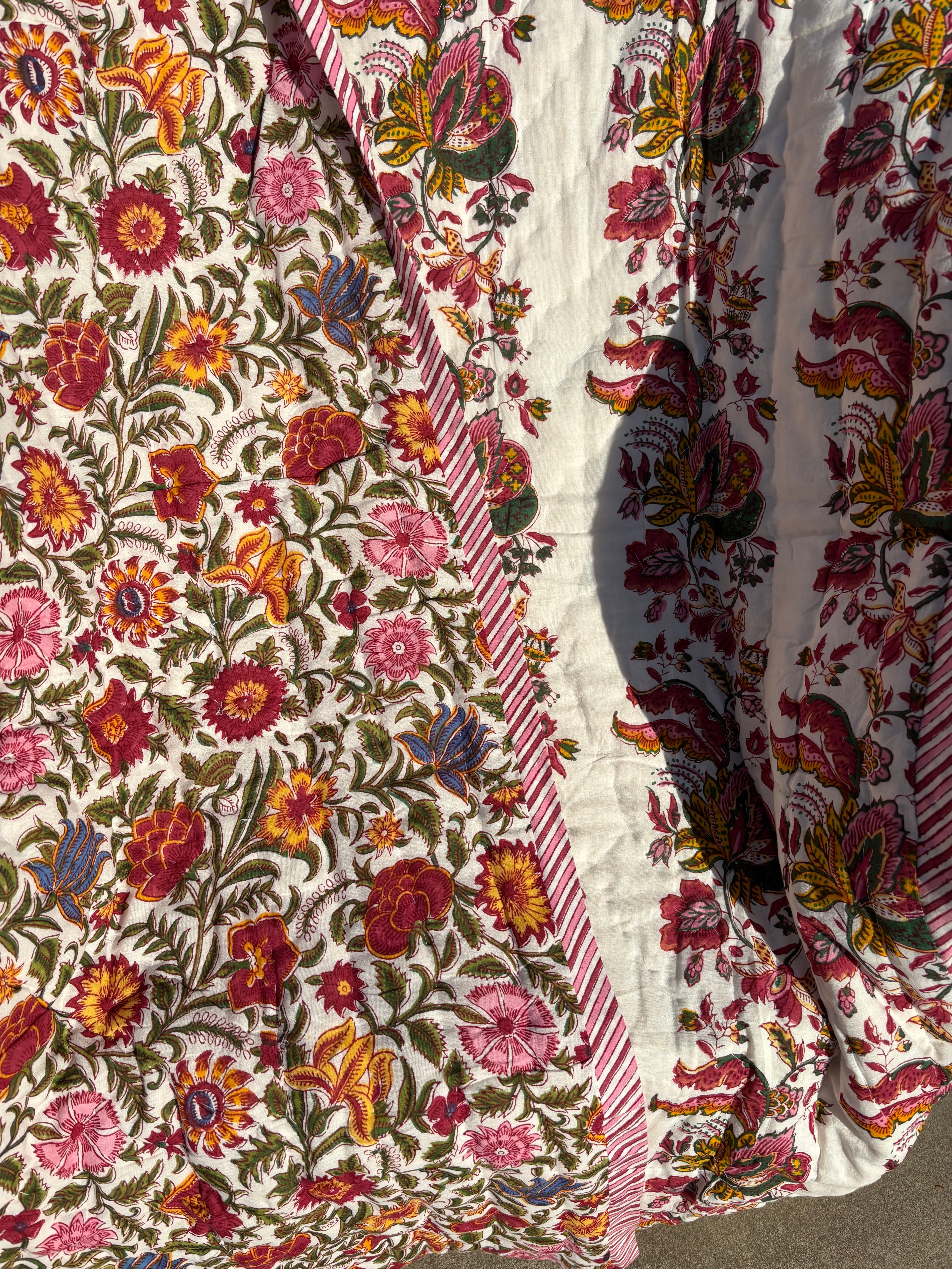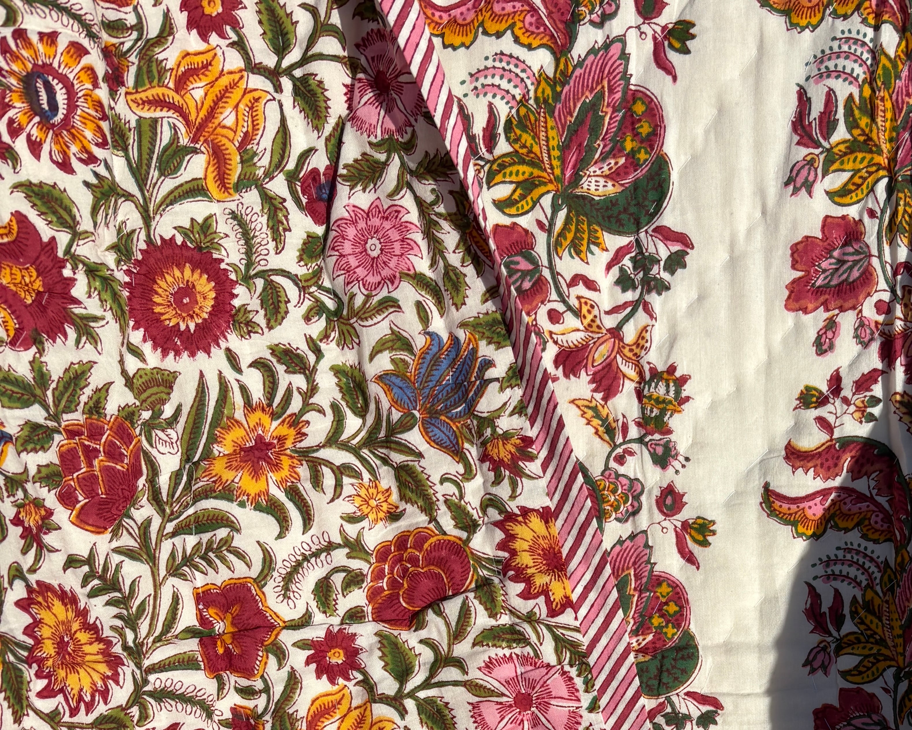 Cotton100%で柄から仕上げまで職人の手作業で仕上げられた軽くて柔らかい中綿入りのリバーシブルキルト ー