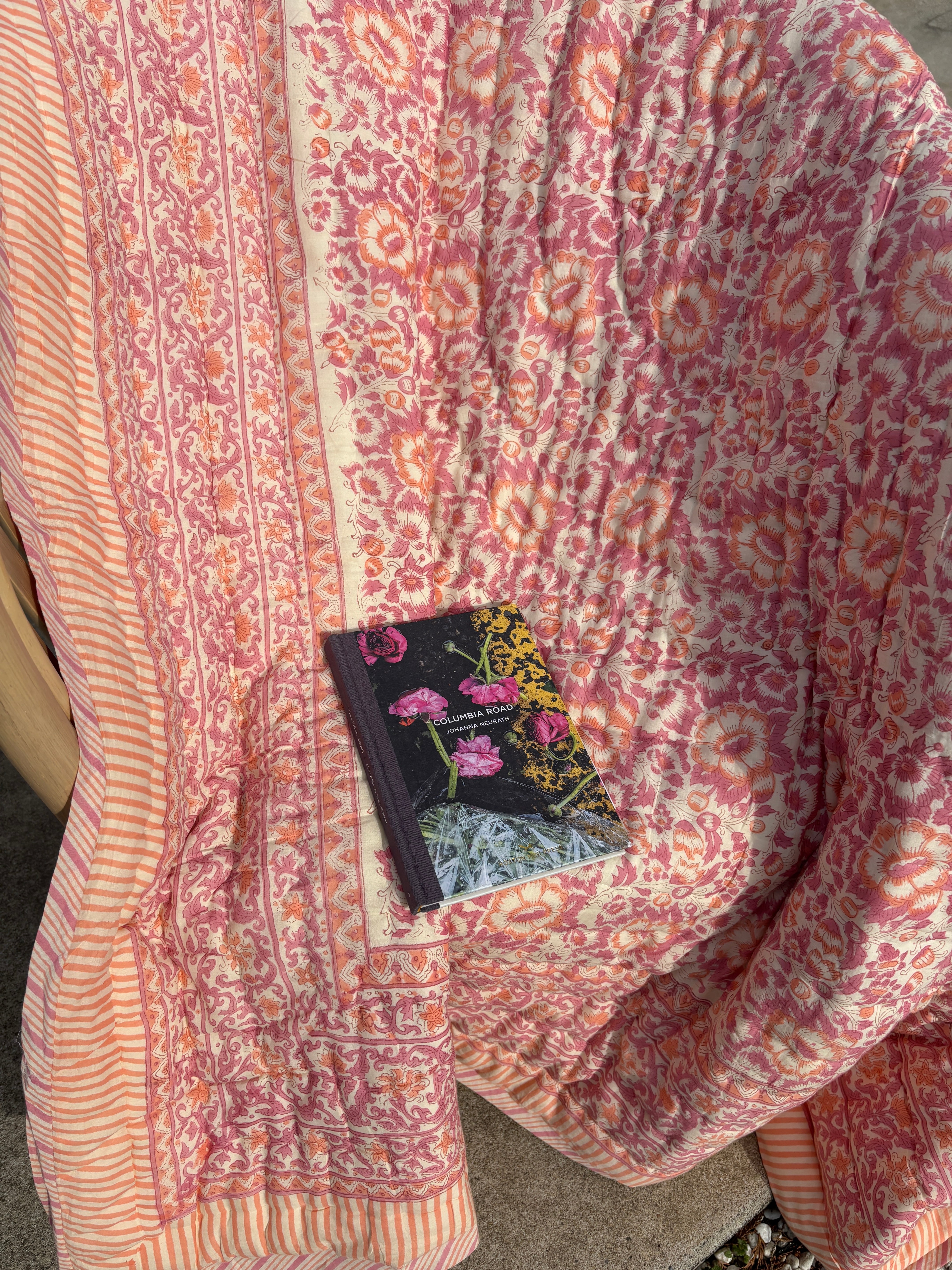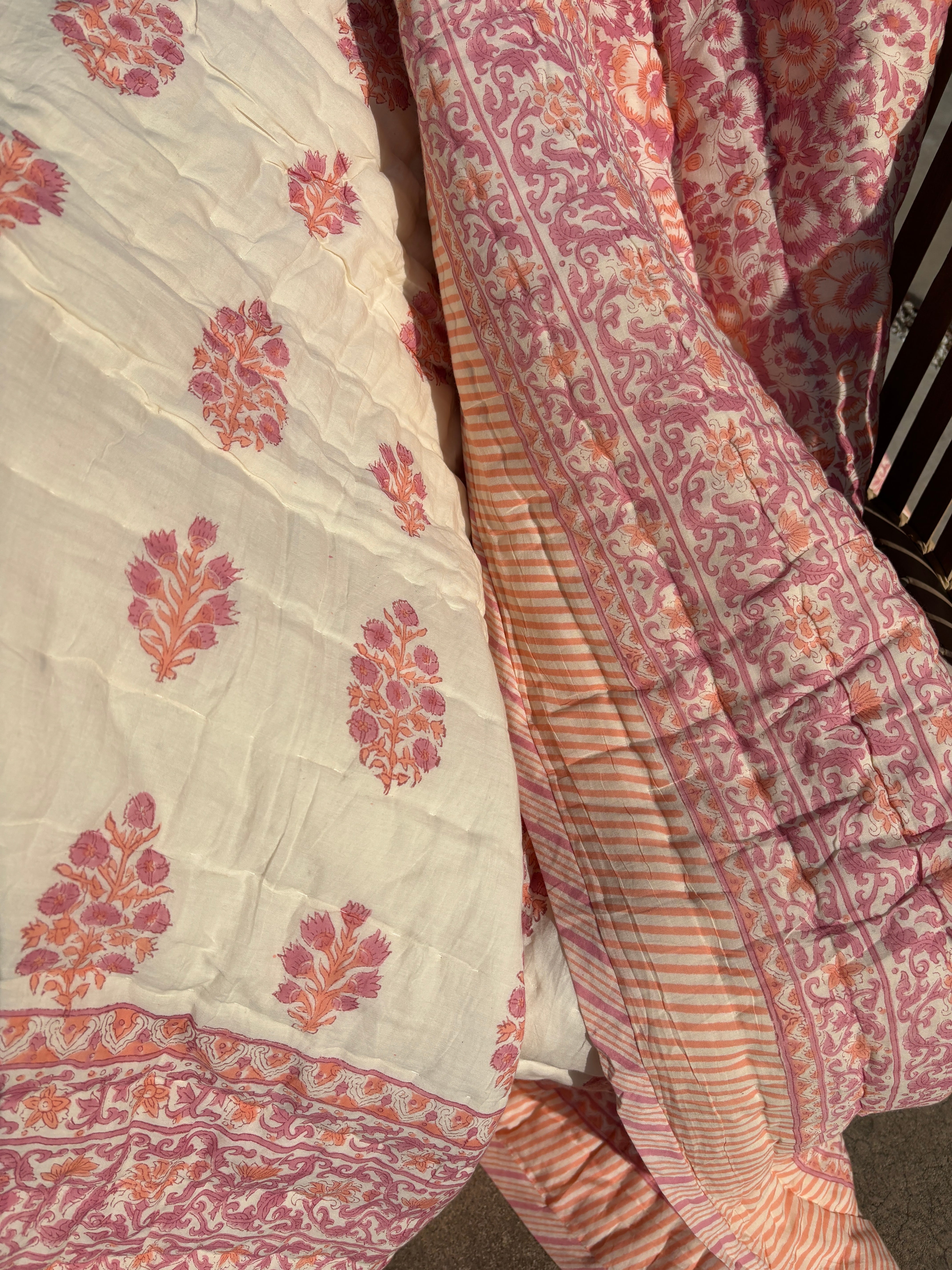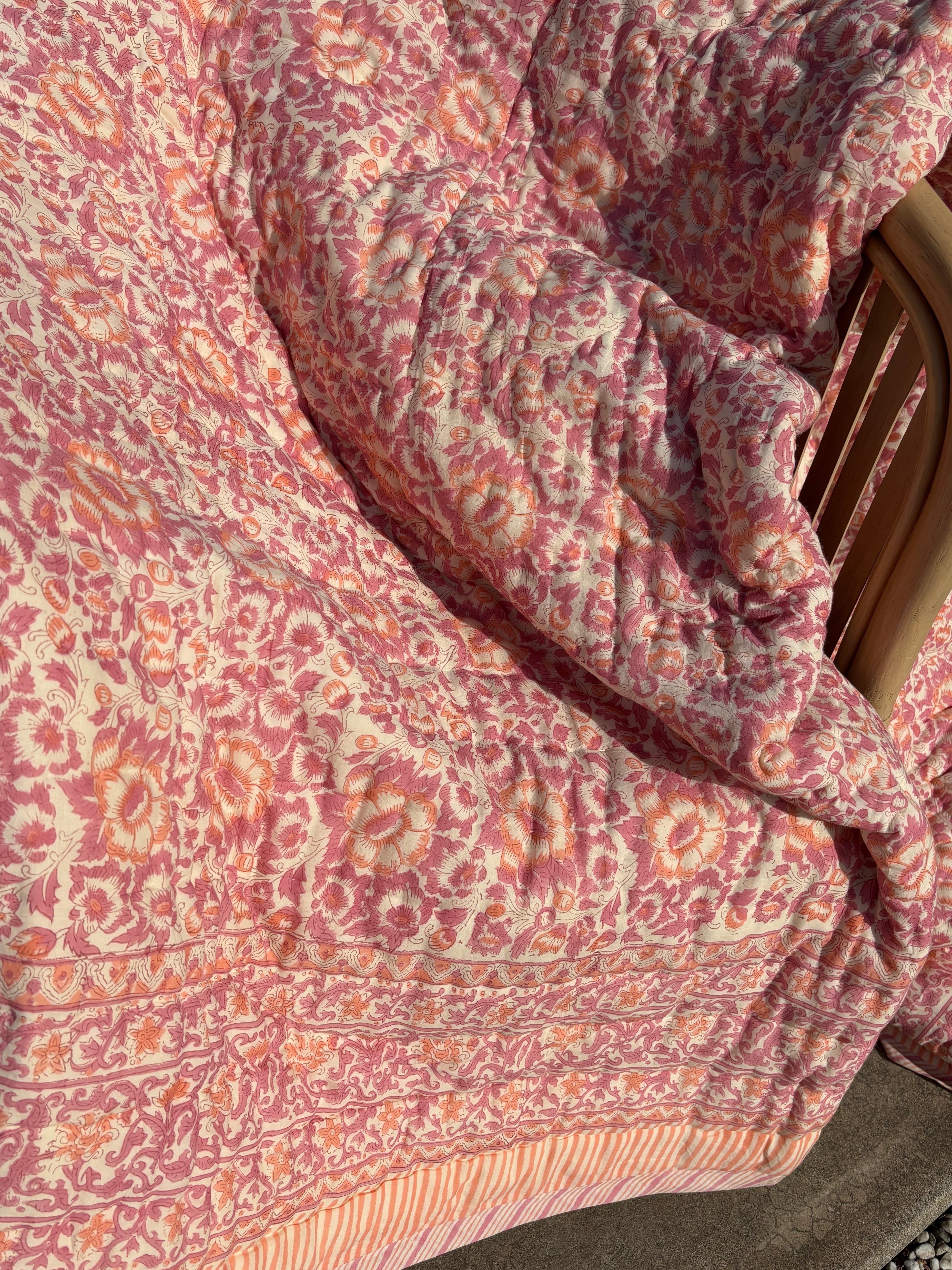 M【Single size】Block print Reversible quilt / Pink Clasic