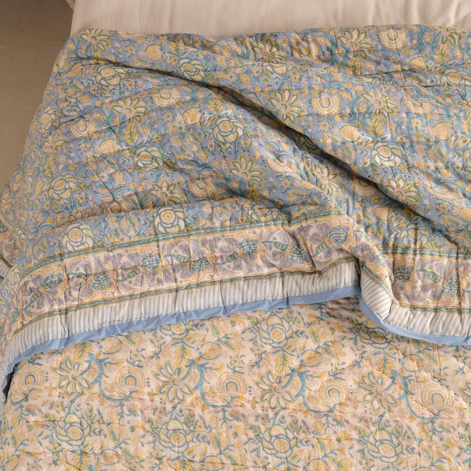 Cotton100%で柄から仕上げまで職人の手作業で仕上げられた軽くて柔らかい中綿入りのリバーシブルキルト ー